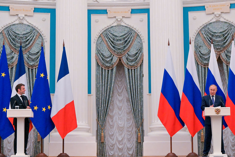 Встреча Макрона с Путиным состоялась 7 февраля, и длилась более пяти часов. Лидеры двух стран провели часть беседы за рабочим обедом, в ходе которого российский президент угостил Макрона осетриной, олениной и грушевым пирогом. По итогам переговоров была проведена пресс-конференция, после которой политики проговорили еще около 20 минут.