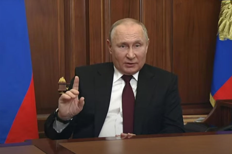 Президент России Владимир Путин, выступая с телеобращением к гражданам страны, заявил, что большевики буквально втиснули Донбасс в состав Украины. Трансляция ведется в эфире телеканала «Россия 24».