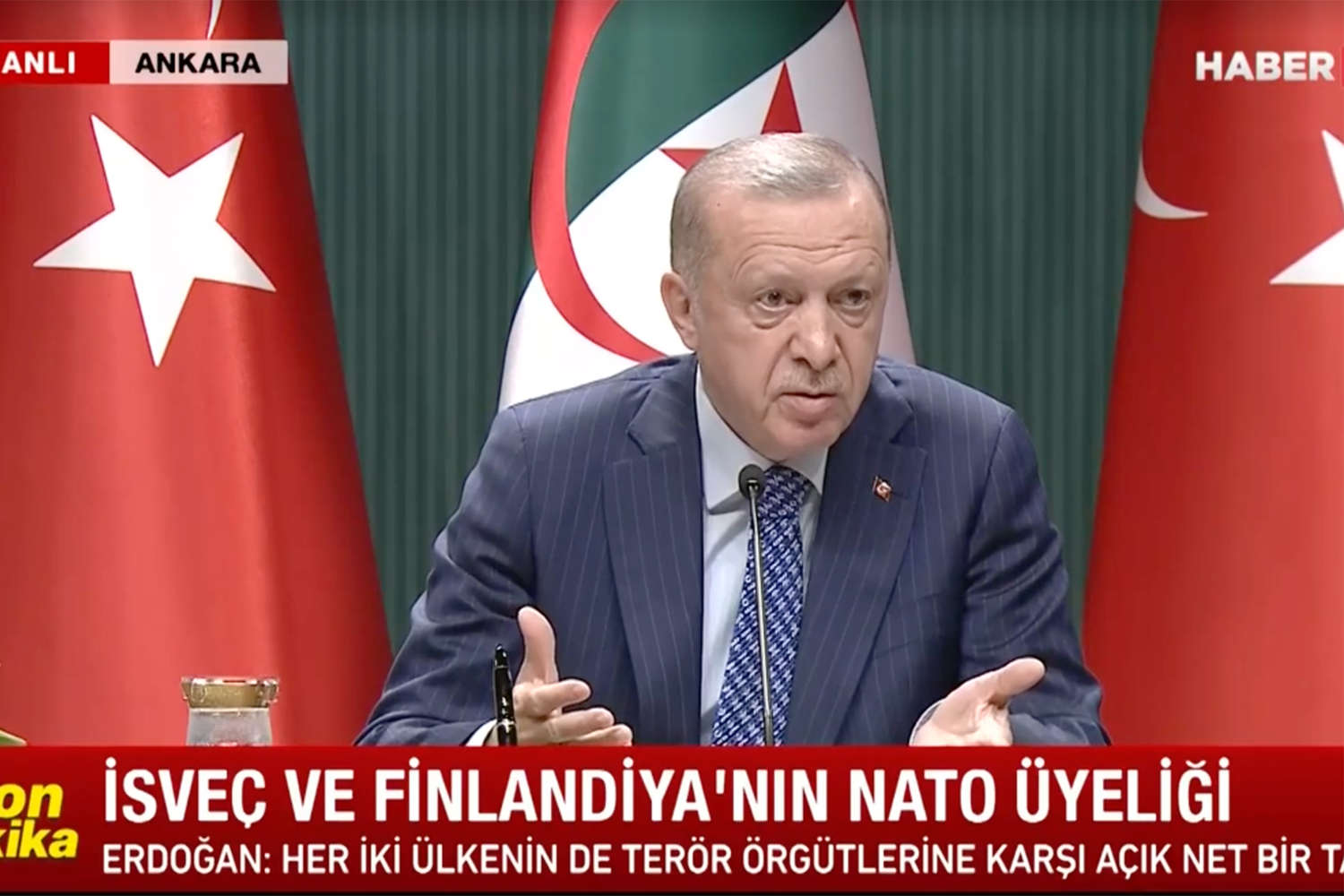 Президент Турции Реджеп Тайип Эрдоган заявил журналистам по итогам переговоров с алжирским коллегой Абдельмаджидом Теббуном, что Анкара не может поддержать желание Швеции и Финляндии вступить в НАТО и не ждет глав МИД для дополнительных переговоров, сообщает CNN Türk.