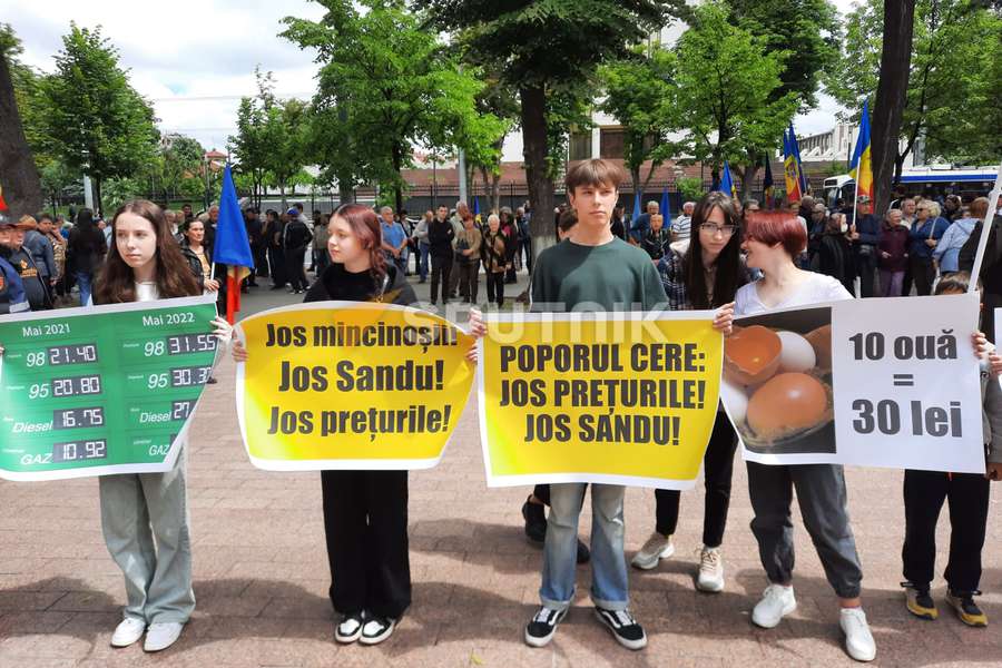 По информации издания, в первой линии манифестантов стоят молодые люди с множеством различных плакатов. В частности, с лозунгами «Руки прочь от оппозиции», «Долой режим [президента Молдавии Майи] Санду» и «Инфляция 27%». При этом некоторые активисты держат плакаты, на которых изображен рост цен на топливо и продукты в республике.