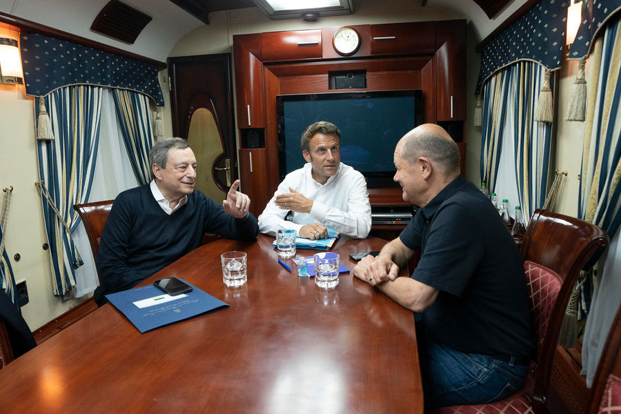 Издание также опубликовало фотографию с Драги, Шольцем и Макроном, сидящими за столом в вагоне. Как отмечают журналисты, поездка проходила при соблюдении повышенных мер безопасности.