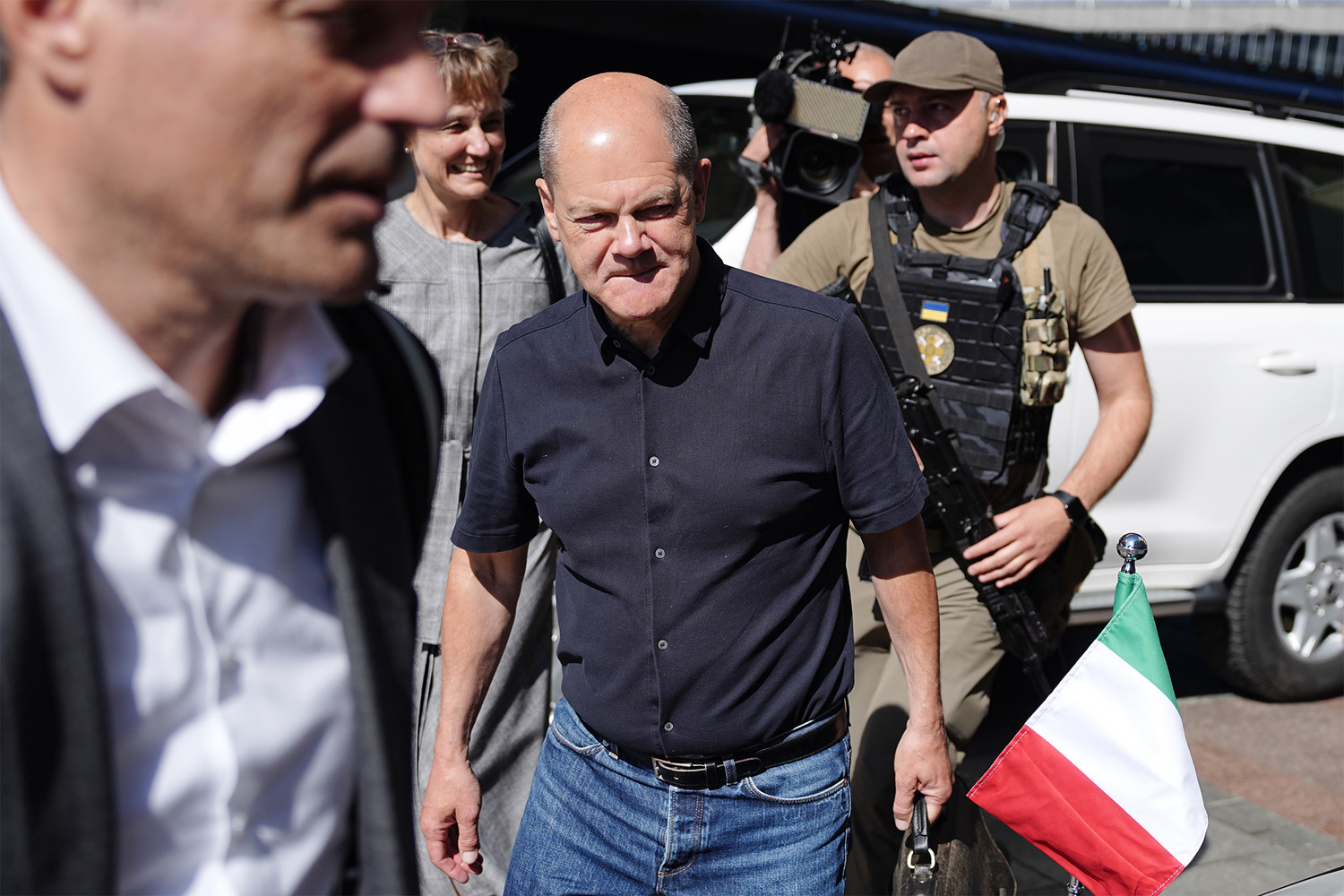 Шольц отметил, что этим визитом они демонстрируют солидарность, а также хотят гарантировать, что организованная финансовая, гуманитарная и военная помощь Украине «будет продолжена».