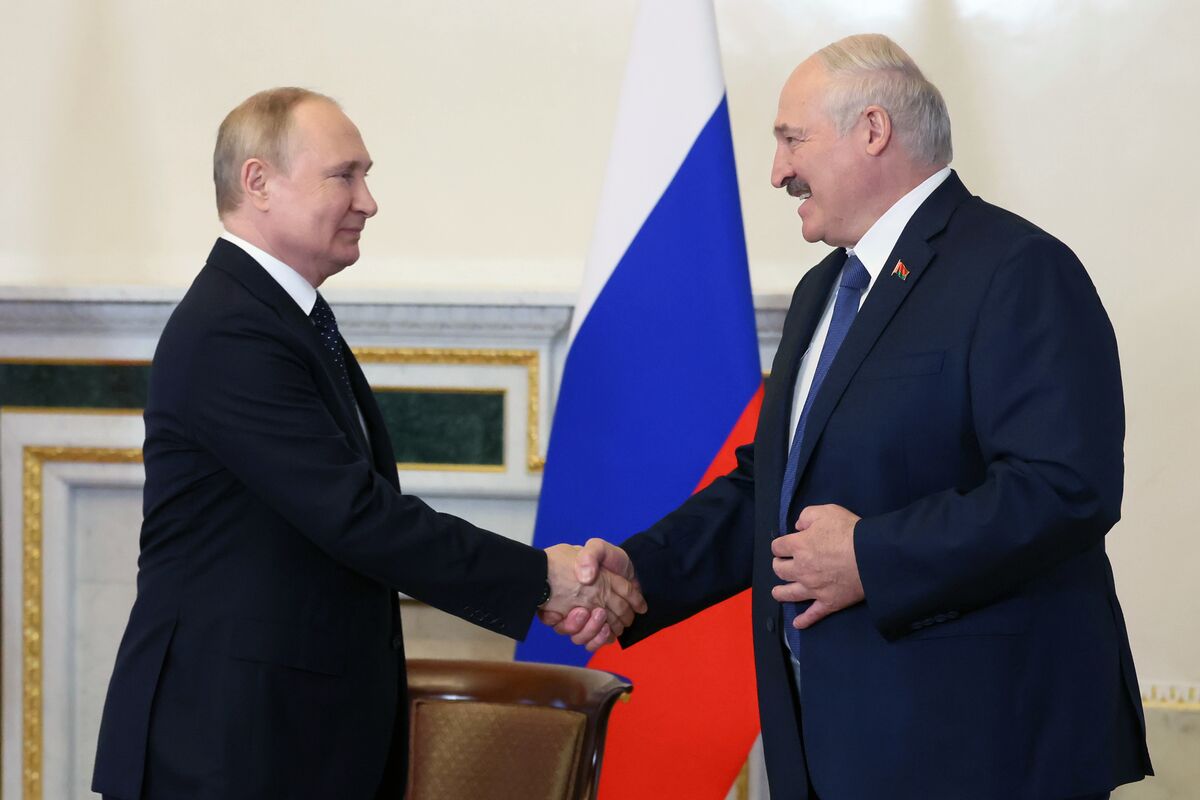 Президент России Владимир Путин и его белорусский коллега Александр Лукашенко в день 30-летия установления дипломатических отношений между странами начали переговоры в Константиновском Дворце в Петербурге. Об этом сообщает ТАСС.