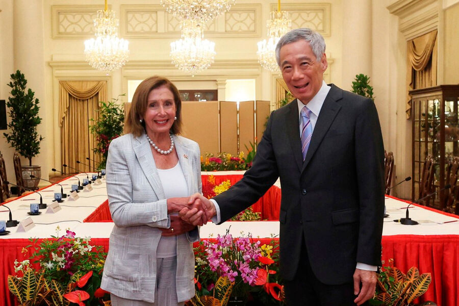Спикер Палаты представителей конгресса США Нэнси Пелоси встретилась с премьер-министром Сингапура Ли Сянь Луном в начале своего турне по азиатским странам. Фото со встречи опубликовано министерством информации и связи Сингапура.
