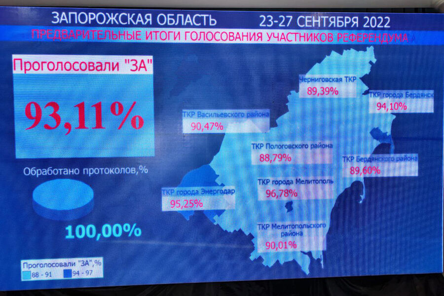 Ранее президент Украины Владимир Зеленский заявил, что украинской стороне больше не о чем будет разговаривать с президентом России Владимиром Путиным в случае признания РФ результатов референдумов в Донецкой и Луганской народных республиках, а также в Запорожской и Херсонской областях.