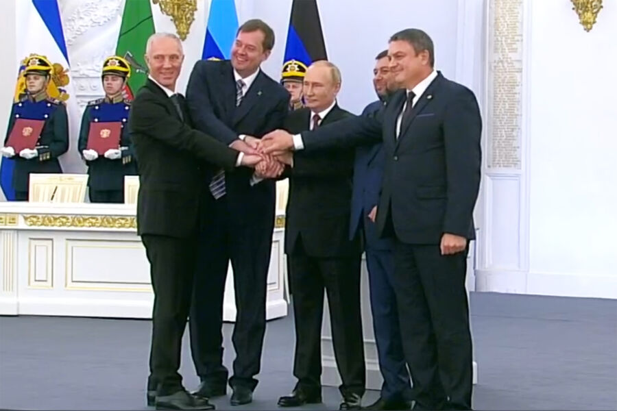 В Кремле прошла церемония подписания договоров о вхождении ДНР, ЛНР, Запорожской и Херсонской областей в состав РФ. «Газета» ведет онлайн-трансляцию.
