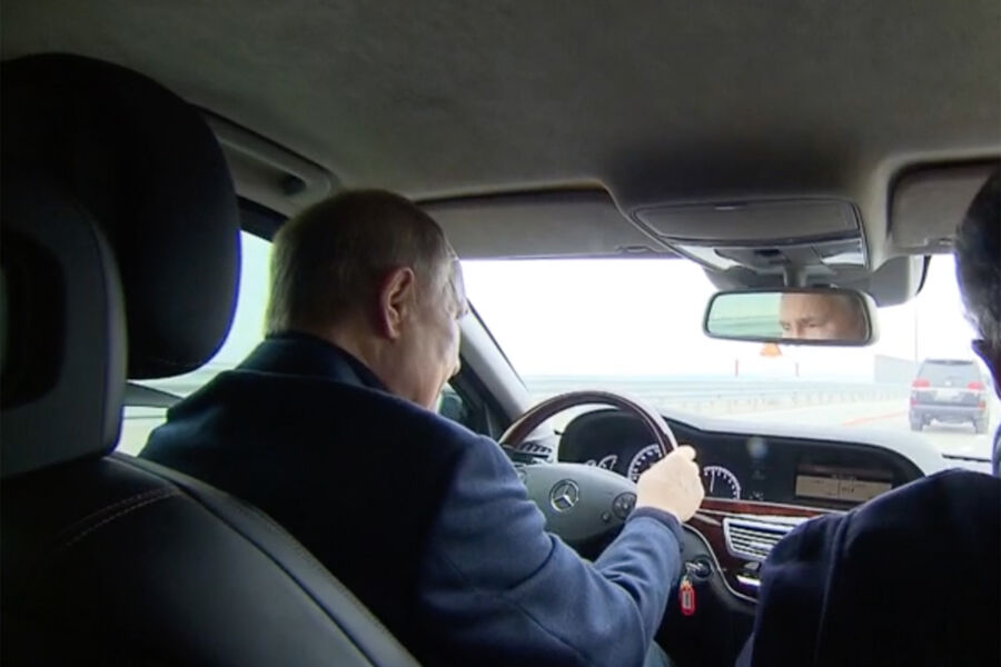 Уточняется, что Путин поговорил со строителями и проехался по мосту за рулем автомобиля Mercedes-Benz. Глава государства также выслушал доклад вице-премьера РФ Марата Хуснуллина о ходе ремонтных работ.