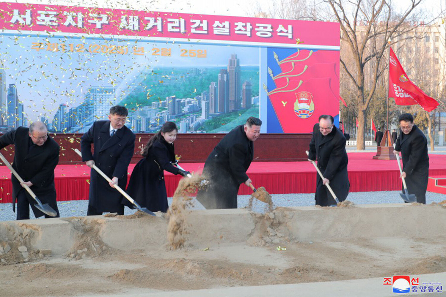 Ким присутствовал на церемонии в районе Сопхо в Пхеньяне в Пхеньяне в субботу, которая является частью проекта по строительству 4100 домов в северной части северокорейской столицы.