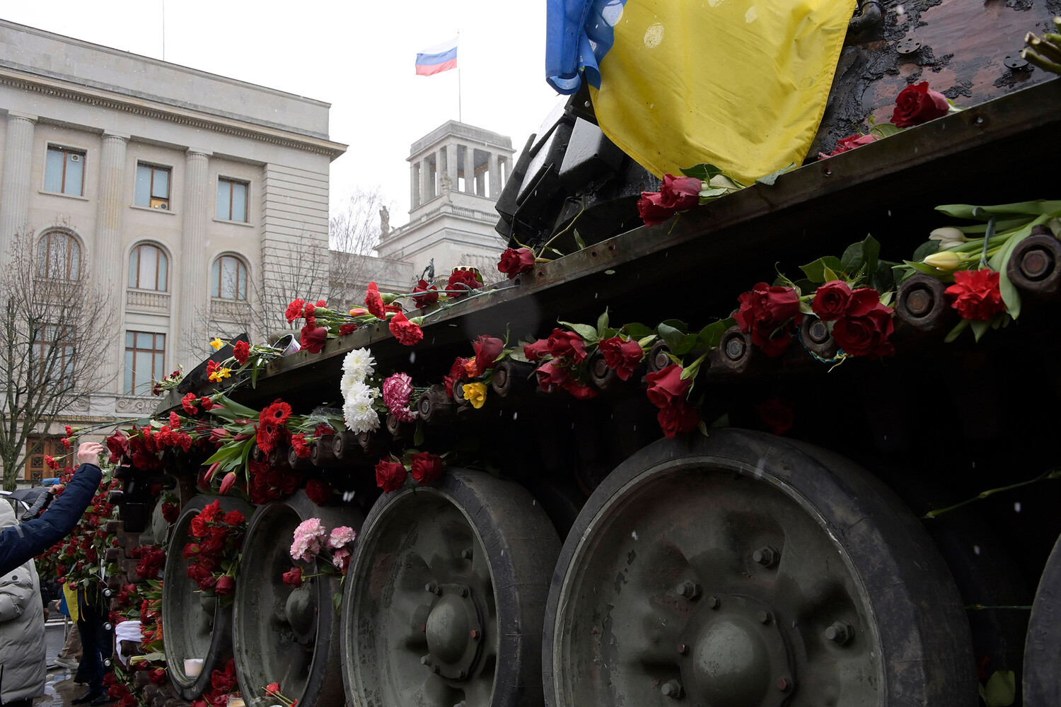 25 февраля в Берлине прошла многотысячная акция протеста с требованием прекратить поставки тяжелых вооружений Украине. В ходе нее демонстранты возложили цветы к установленному ранее проукраинскими активистами перед российским посольством танку, подбитому в ходе спецоперации на Украине.