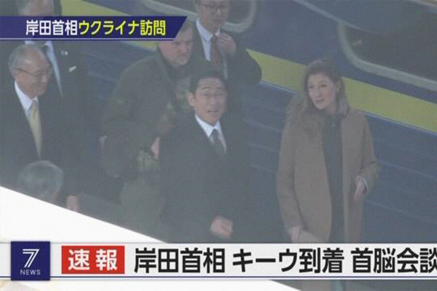 Согласно кадрам японского общественного телевидения, Кисида прибыл в Киев на поезде из Польши. На железнодорожном вокзале его, в частности, встретила первый замглавы МИД Украины Эмине Джапарова.