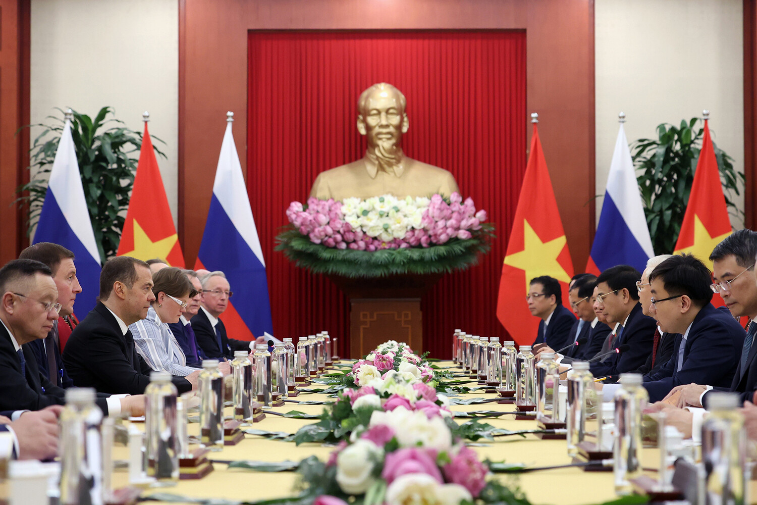 Медведева приветствовал президент Вьетнама Во Ван Тхыонг. Он сказал, что российский политик привез во Вьетнам «теплые чувства российского народа».