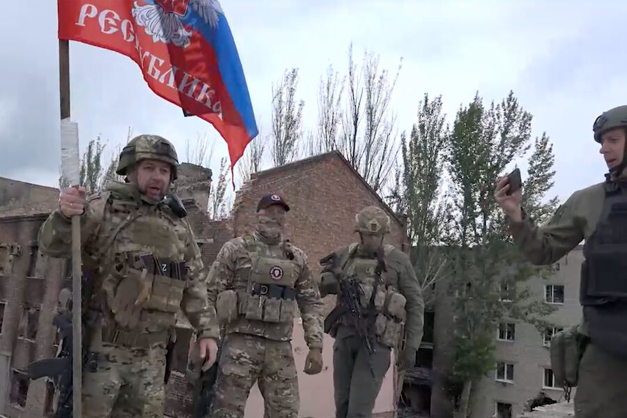 «Символичный, но очень важный момент. Флаг Донецкой народной республики в освобожденном Артемовске на одном из немногих уцелевших административных зданий», — сказал Пушилин.