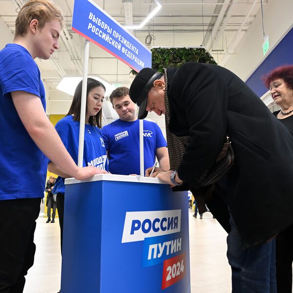 Подавать документы и подписи в ЦИК, которые необходимы для регистрации Путина на выборах, пришли сопредседатели его избирательного штаба Владимир Машков и Марьяна Лысенко, а также доверенное лицо кандидата в президенты Виктор Блажеев и волонтер штаба Захар Перцев.