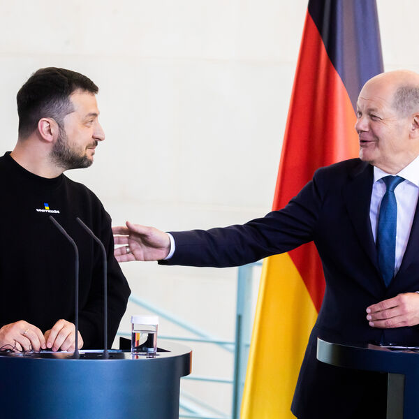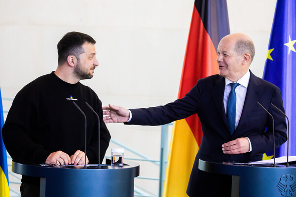 Подпись он сопроводил фотографией, на которой вместе стоят президент Украины Владимир Зеленский и канцлер Германии Олаф Шольц.