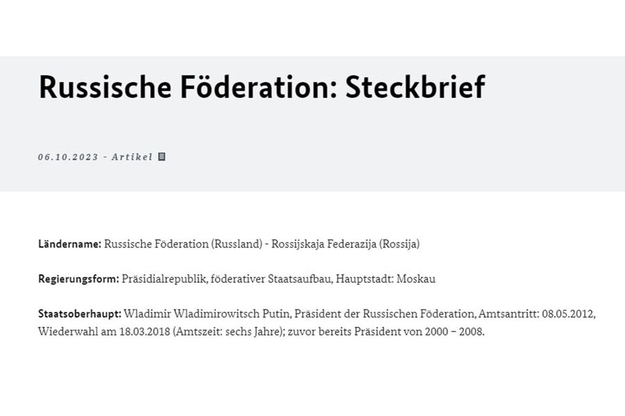 При этом еще в феврале в ответе на запрос РИА Новости пресс-служба МИД ФРГ использовала формулу «президент Путин», а на сайте МИД ФРГ Путин также обозначен как президент и глава государства (на скриншоте).