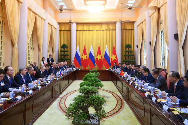 Со стороны России в переговорах принимают участие министр иностранных дел Сергей Лавров, вице-премьер Дмитрий Чернышенко, пресс-секретарь главы российского государства Дмитрий Песков, помощник президента Юрий Ушаков, посол во Вьетнаме Геннадий Бездетко, министр юстиции Константин Чуйченко, министр промышленности и торговли Антон Алиханов, глава Минтранса Роман Старовойт, глава Минэнерго Сергей Цивилев, глава ФСВТС Дмитрий Шугаев, глава Роспотребнадзора Анна Попова, генеральный директор «Росатома» Алексей Лихачев, заместитель министра обороны Александр Михеев, генеральный директор «Рособоронэкспорта» Александр Михеев, глава РФПИ Кирилл Дмитриев, генеральный директор «Зарубежнефти» Сергей Кудряшов, председатель правления компании «Новатэк» Леонид Михельсон, глава ВЭБ.РФ Игорь Шувалов.