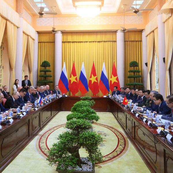 Президент России Владимир Путин и президент Социалистической Республики Вьетнам То Лам проводят двусторонние переговоры, встреча проходит в Большом зале президентского дворца в Ханое, передает РИА Новости.