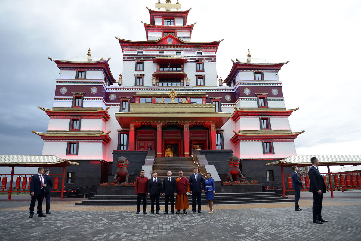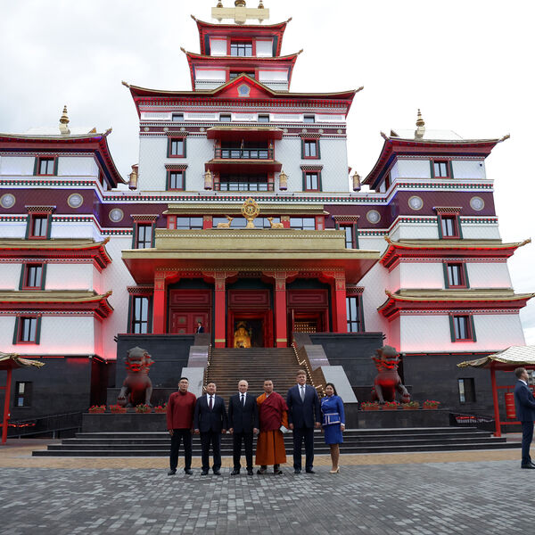Президент РФ Владимир Путин осмотрел монастырский комплекс «Тубтен шедруб линг» (тиб. «Обитель объяснения и практики учения Будды Шакьямуни»), открытый в прошлом году. Об этом сообщает ТАСС.