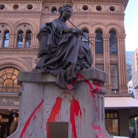 В публикации уточняется, что акт вандализма был совершен минувшей ночью. Неизвестные облили красной краской статую королевы Виктории, установленную в центре Сиднея у «Дома королевы» (Queen Victoria Building) на углу Джордж и Друитт-стрит.