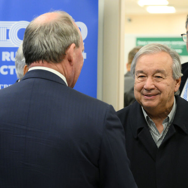 Гутерриша в международном аэропорту Казань имени Тукая встретил председатель государственного совета Республики Татарстан Фарид Мухаметшин.