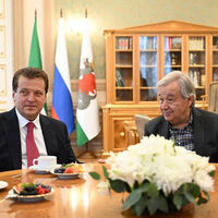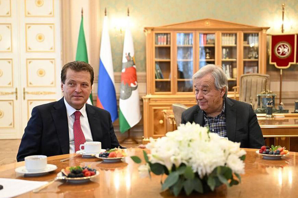 «Ильсур Метшин принял генерального секретаря ООН Антониу Гутерриша, прибывшего в наш город для участия в саммите БРИКС», — говорится в сообщении.