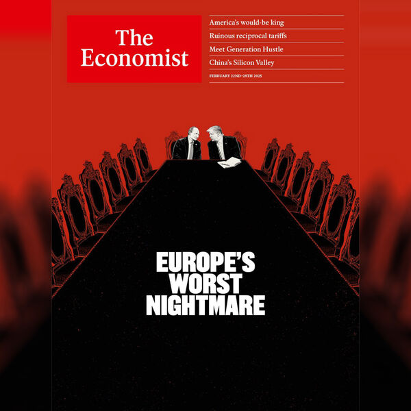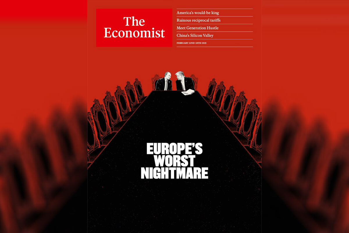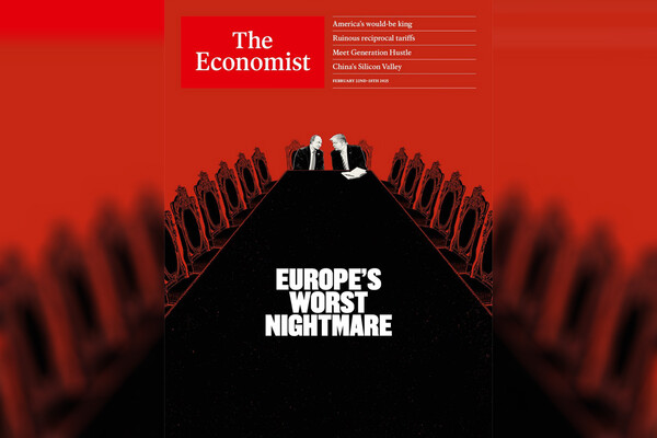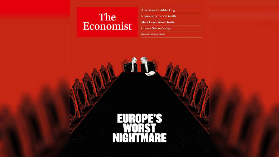 Британский журнал The Economist опубликовал обложку с президентом России Владимиром Путиным и американским лидером Дональдом Трампом, политики сидят во главе стола. Издание сделало подпись о том, что Европу постиг «худший кошмар».