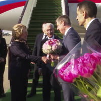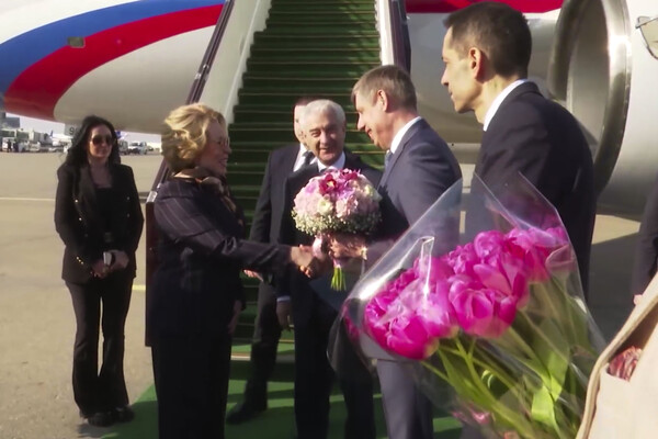 Самолет Матвиенко сел в международном аэропорту Гейдар Алиев. В авиагавани ее встретили заместитель председателя Милли Меджлиса (парламента) Азербайджана Али Ахмедов, руководитель рабочей группы по азербайджано-российским межпарламентским связям Полад Бюльбюльоглы и другие официальные лица.