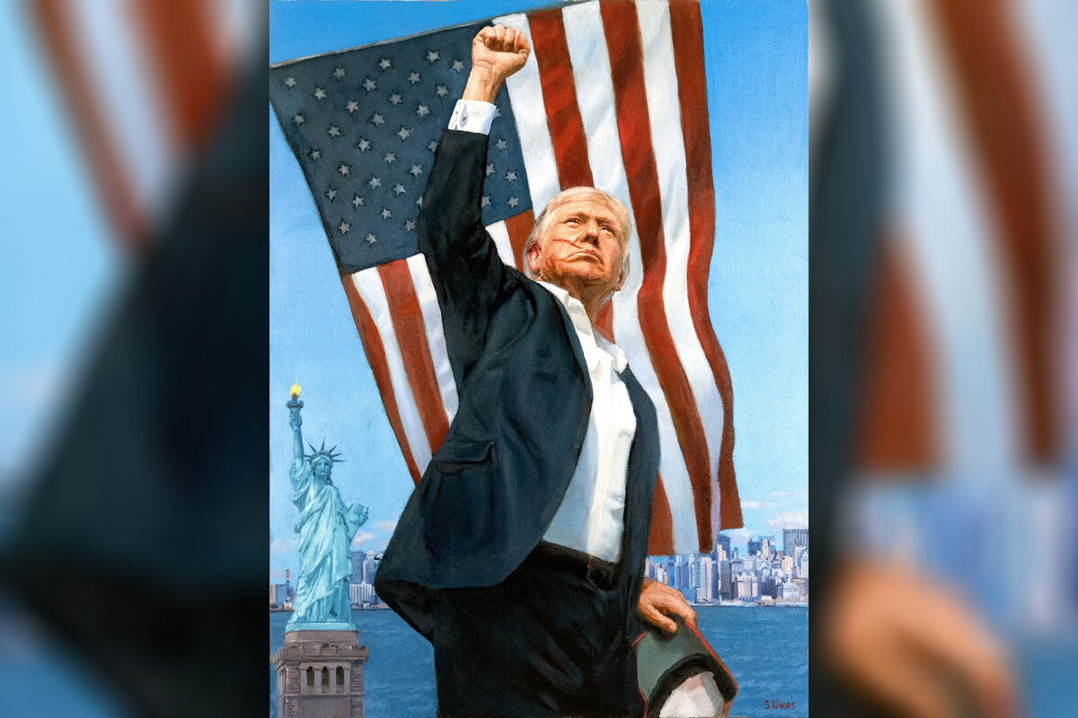 На картине лидер Соединенных Штатов изображен после попытки покушения. Он показан с поднятым вверх кулаком и подтеками крови на лице. Произведение искусства напоминает о моменте покушения на Трампа во время его предвыборного выступления в Пенсильвании 13 июля 2024 года. Автором работы является народный художник РФ Никас Сафронов.