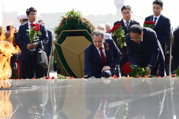 Гладков и Чжу Кайго почтили память красноармейцев, возложив цветы к вечному огню и памятникам героев войны. Чиновников сопровождали митрополит Белгородский и Старооскольский Иоанн, председателем областной думы Юрий Клепиков.