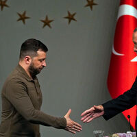 В Анкаре Зеленский провел встречу с президентом Турции Реджепом Тайипом Эрдоганом. На пресс-конференции после встречи он высказался о переговорах между украинской и российской делегациями, которые должны пройти в Стамбуле. Зеленский заявил, что переговоры в Стамбуле могут пройти сегодня вечером, либо на следующий день — 16 мая. Он также отмечал, что глава минобороны Украины Рустем Умеров возглавит делегацию Украины. При этом сам украинский президент говорил о том, что не будет участвовать в переговорах.
