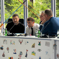 Глава офиса президента Украины Андрей Ермак опубликовал фото с украинским лидером Владимиром Зеленским, сделанное на саммите Европейского политического общества в столице Албании Тиране. Фотография была выложена в Telegram-канале Ермака.