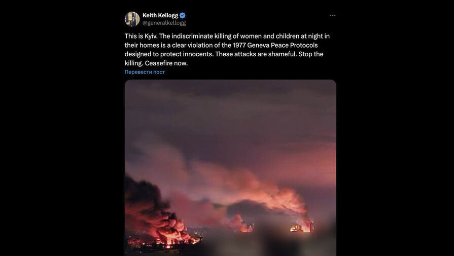 Политолог Юрий Светов в беседе с Tsargrad.tv прокомментировал фото Киева после взрывов, опубликованное спецпредставителем президента США Китом Келлогом.