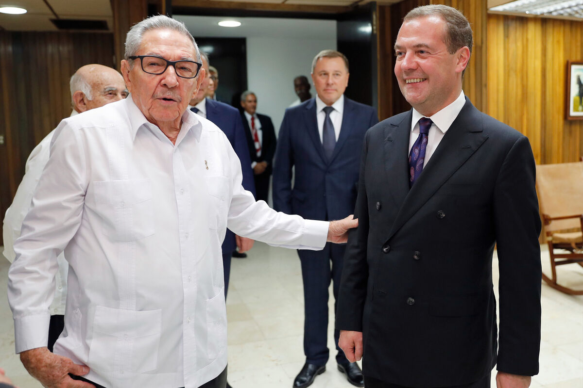«[Медведев] поблагодарил Кастро за последовательную поддержку, которую Гавана оказывает Москве в противостоянии с коллективным Западом», — сообщили в секретариате российского политика.