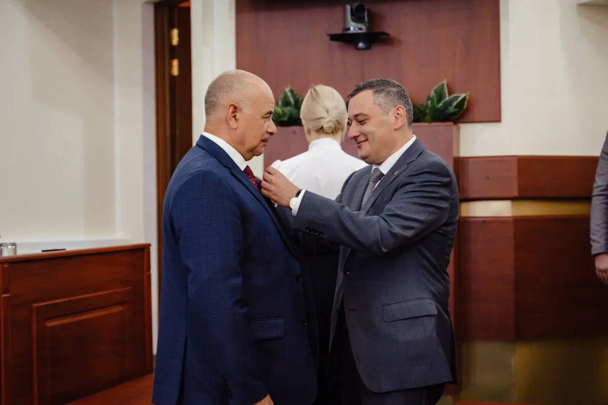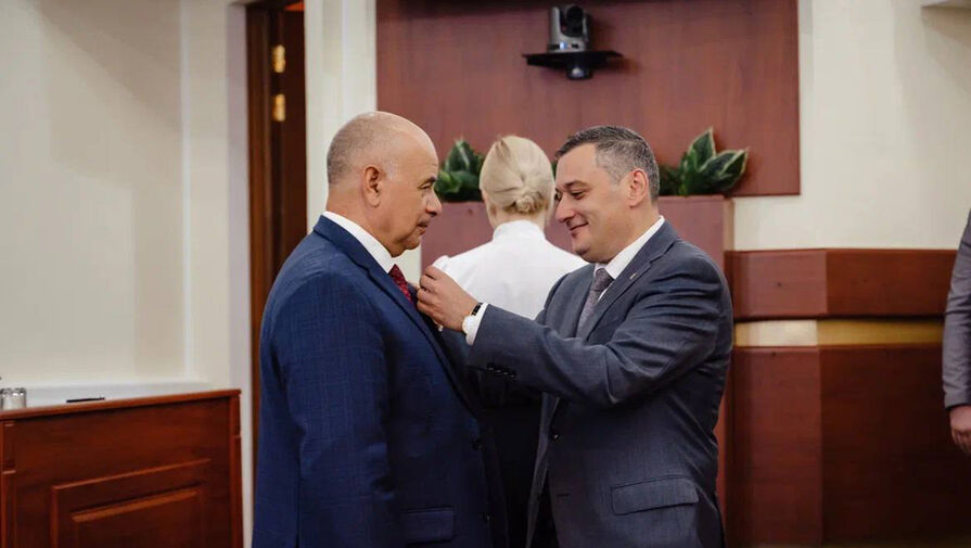 «Пришел на заседание, чтобы поблагодарить Юрия Михайловича за работу. Вручил региональную награду — медаль «За заслуги перед Курской областью» 3-й степени», — написал он.