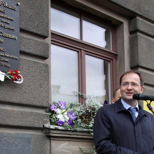 Мединский поделился, что в 2014 году они вместе с товарищем установили за свои средства мемориальную доску на доме в латвийской столице, где жил Пикуль. По его словам, власти не согласовали установку мемориальной доски из «красивой бронзы», поэтому им «пришлось делать» ее «скромно, как требовали, на двух языках».