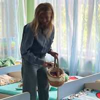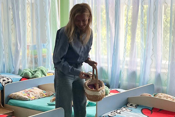 На снимках экс-политик запечатлена во время посещения детского учреждения. На снимке Поклонская с распущенными волосами, на ней надета голубая блузка и светло-синие джинсы свободного кроя.