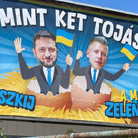 Уточняется, что в Венгрии распространились плакаты, на которых Зеленский и оппозиционный политик Петер Мадьяр изображены вылупившимися из яиц в одном гнезде.