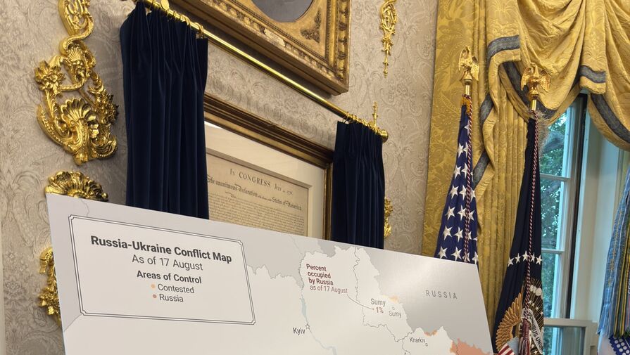 18 августа во время встречи Трампа и Зеленского в Овальном кабинете развернули карту Украины. По данным BBC, восточная часть территории страны, которую в настоящий момент контролируют ВС России, оказалась окрашена розовым цветом.
