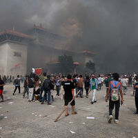 Протестующие устроили в столице настоящую охоту за чиновниками — непальцы поджигали здания правительства и резиденции президента и министров, нападали на членов кабмина. По данным телеканала India Today, демонстранты, в частности, избили главу МИД и министра финансов страны Непала.
