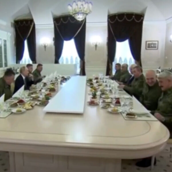 На кадрах запечатлены сидящие за столом российский лидер, министр обороны Андрей Белоусов, директор ФСБ Александр Бортников, начальник Генерального штаба Вооруженных сил Валерий Герасимов, а также командующие группировками войск.