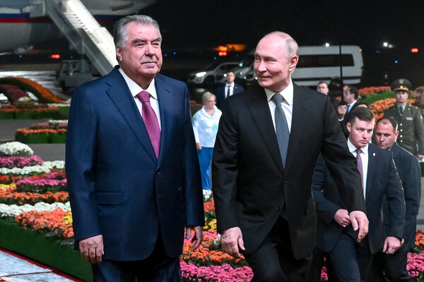Президент России Владимир Путин в шутку пожаловался, что президент Таджикистана Эмомали Рахмон морил его голодом. Кадры с Путиным опубликовал журналист Павел Зарубин в своем Telegram-канале.