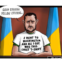 Британская газета The Telegraph опубликовала карикатуру с президентом Украины Владимиром Зеленским по мотивам его неудачного визита в США.