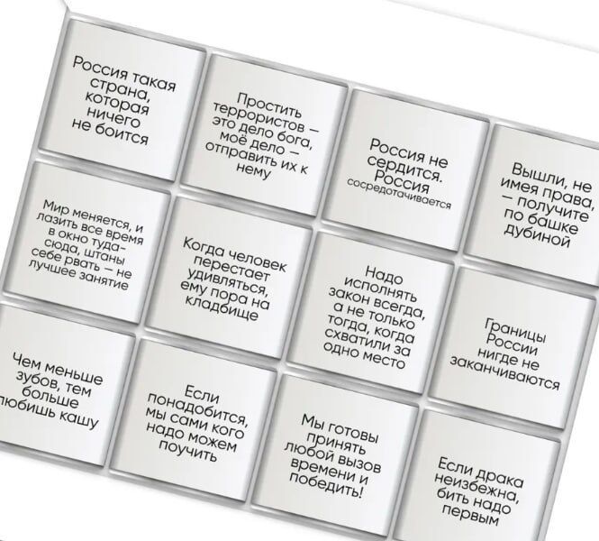 Как отметил Дмитриев, конфеты предназначены для подарка в рамках диалога Россия—США. На фотографии, которую он опубликовал, видны конфеты с надписями «Своих не бросаем» и цитатой российского президента: «Вести диалог с Россией с точки зрения силы — бессмысленно».