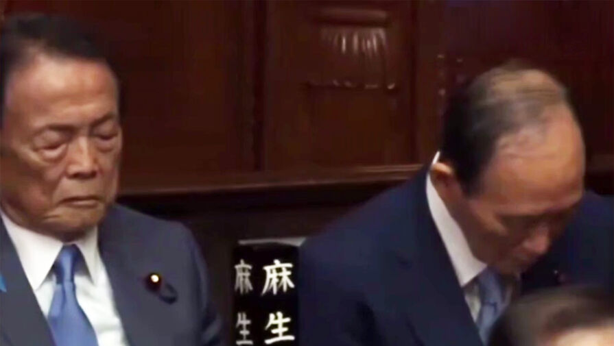 Как отмечается в сообщении, речь идет о Таро Асо, Ёсихидэ Суга, Фумио Кисиду и Сигэру Исибу. Политики сидели с закрытыми глазами во время выступления нового премьера Японии Санаэ Такаити.