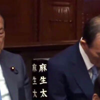 Как отмечается в сообщении, речь идет о Таро Асо, Ёсихидэ Суга, Фумио Кисиду и Сигэру Исибу. Политики сидели с закрытыми глазами во время выступления нового премьера Японии Санаэ Такаити.