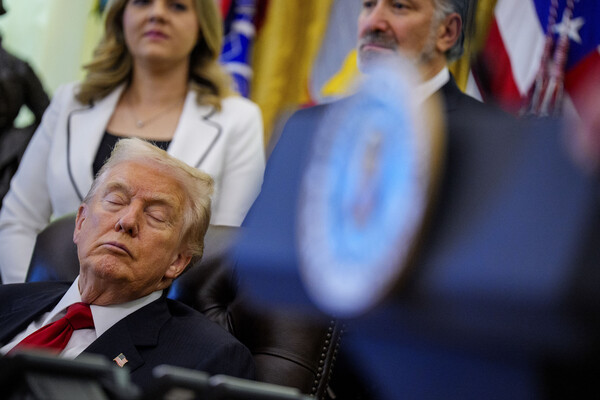 По сети распространились фотографии, на которых президент США Дональд Трамп сидит с закрытыми глазами во время встречи в Овальном кабинете. Снимки стали поводом для критики со стороны оппонентов американского лидера, пишет CNN.