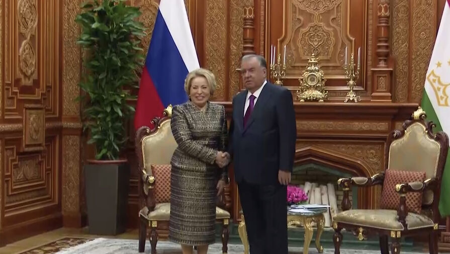 «В Душанбе состоялась встреча председателя Совета Федерации Валентины Матвиенко с президентом Республики Таджикистан Эмомали Рахмоном», — говорится в сообщении.