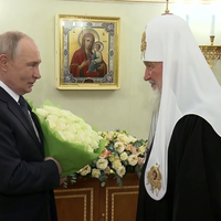 Российский лидер встретился с главой Русской православной церкви (РПЦ) в Патриарших палатах Кремля. Глава государства отметил вклад патриарха Кирилла в православный мир и общество в целом. Путин подчеркнул энергичность патриарха, поблагодарил его и пожелал здоровья, а также вручил букет белых роз.