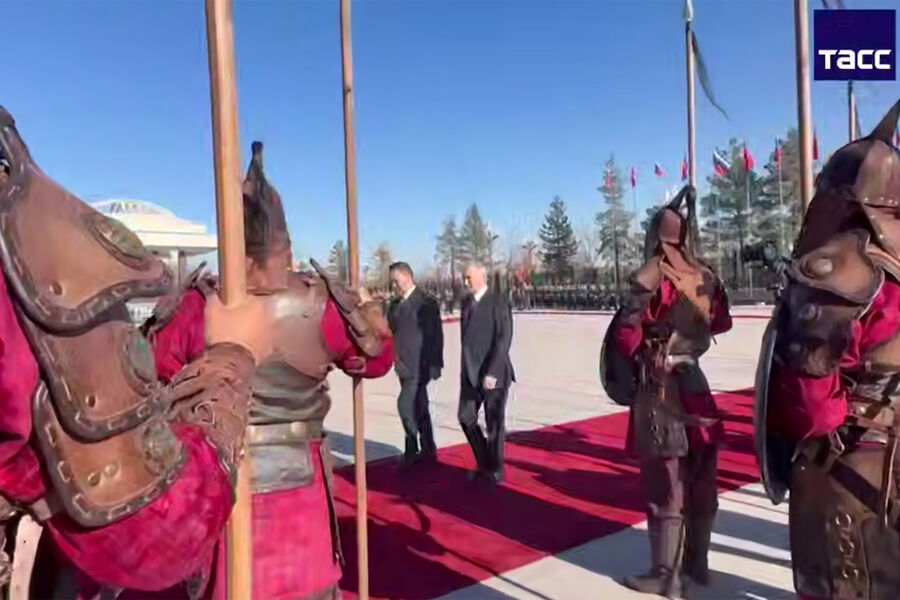 Российский лидер прилетел в Киргизию 25 ноября. У трапа Путина лично встретил Жапаров. В честь прибытия президента РФ в воздушной гавани Бишкека подняли государственные флаги России и Киргизии, уложили красную ковровую дорожку, вдоль которой встал почетный караул. Также вдоль ковровой дорожки установили традиционные юрты.