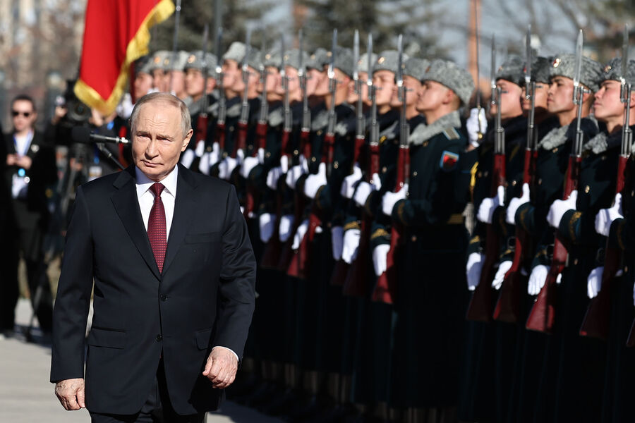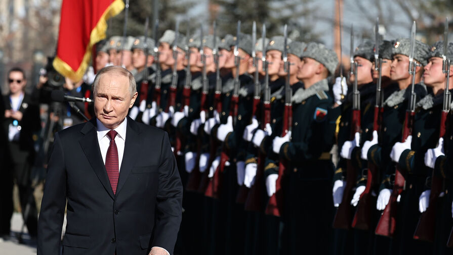 Российский лидер прилетел в Киргизию 25 ноября. У трапа Путина лично встретил Жапаров. В честь прибытия важного гостя в воздушной гавани Бишкека подняли государственные флаги России и Киргизии, уложили красную ковровую дорожку, вдоль которой встал почетный караул. Также вдоль ковровой дорожки установили традиционные юрты.